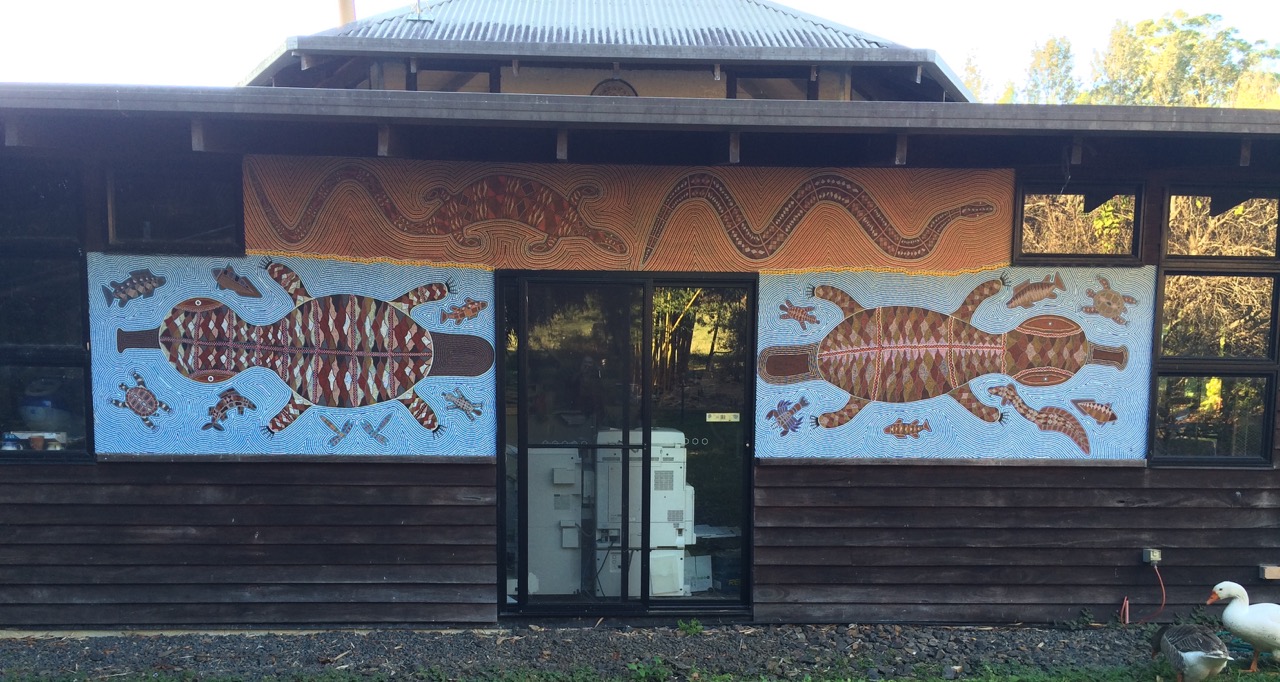 full-wall-djanbung-mural Published 18/06/2019 at 1280 × 682 in Djanbung – Bundjalung connection ‘Djanbung Dreaming’ mural on office wall by Gilbert Laurie at Djanbung Gardens ‘Djanbung Dreaming’ mural on office wall by Gilbert Laurie at Djanbung Gardens ← Previous Next →