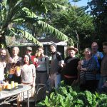 The groups come to our place in Enmore each course for a hands-on Permaculture component and to see an urban Permaculture Food Forest in action. We had 15 people here today, everyone was happy and everyone had something to offer the group – very much communicative horizontal shared learning. We also tour the local bush nursery and community centre and gardens. The wonderful thing about the course is that it reaches out to a lot of people who would never be able to do a PDC. I provides scaffolding and networks so the students have options, including volunteering, further study and even local paid employment after the course. The course certainly illustrates the principle: Use edges and value the marginal. It’s also a prime example of Care of People in action as the students very much support each other over the 15 week programme.